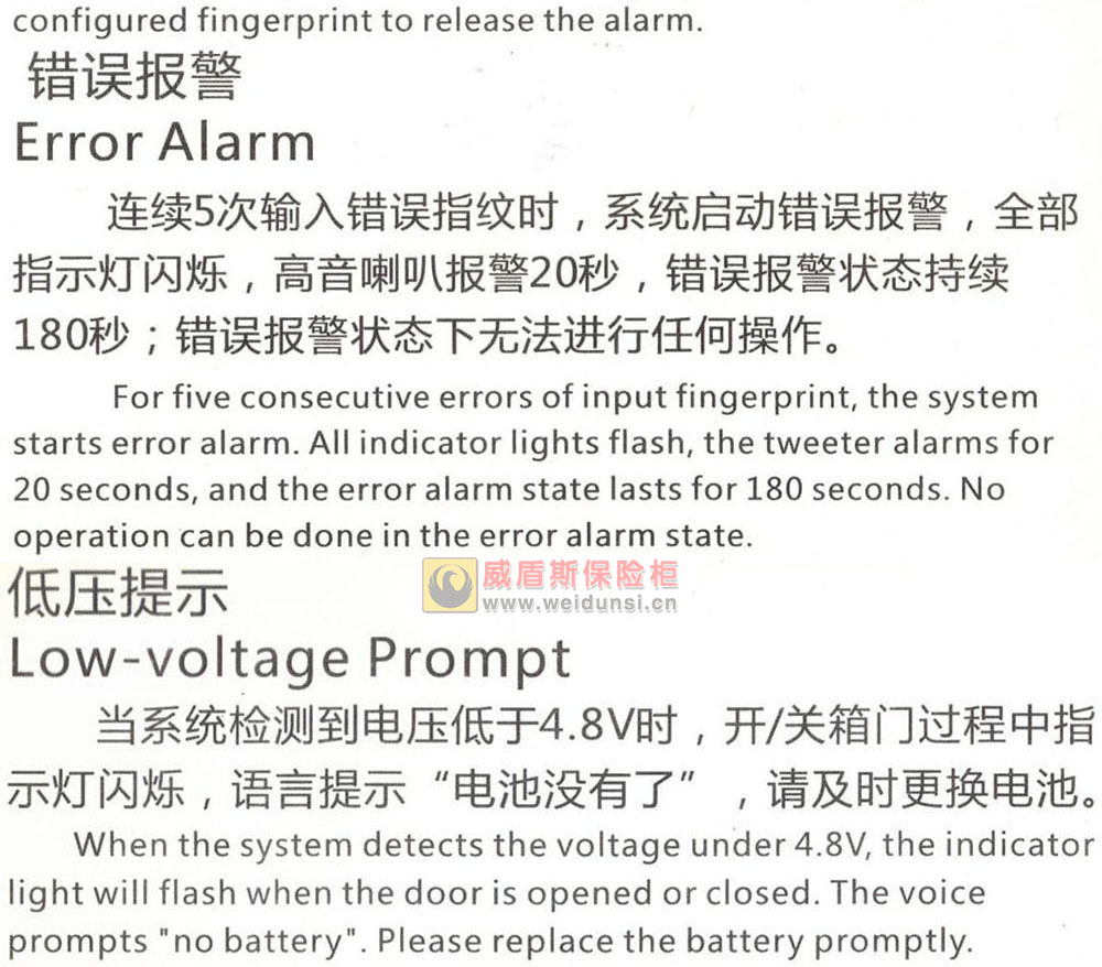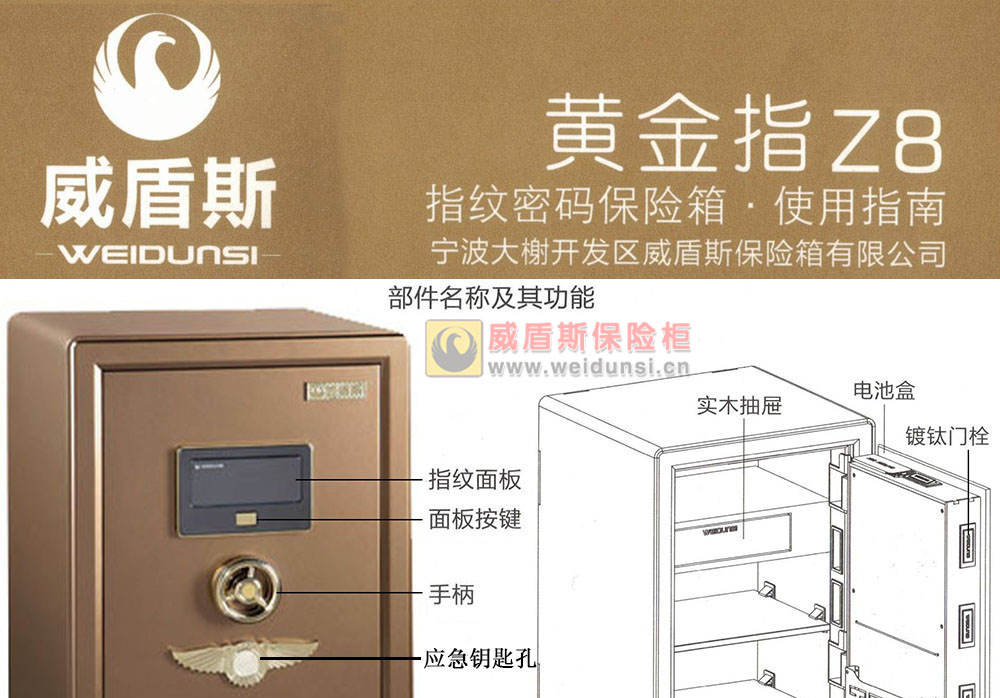 威盾斯保险柜-黄金指Z8指纹系列使用说明